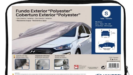 La funda protectora para vehículos está fabricada en Polyester color gris metálico con un tratamiento repelente y resistente al agua. Permite al vehículo resistir a condiciones meteorológicas como nieve, sol (no exposiciones prolongadas), lluvia, polvo... Elimina la posibilidad de arañazos en la carrocería debido a la suavidad del tejido.Esta funda se puede utilizar tanto en interiores como exteriores y se adapta a la forma del vehículo ya que incorpora una goma elástica en la parte perimetral inferior además de 2 gomas, una en la parte delantera y otra, en la parte trasera. También dispone de una apertura con cremallera en la puerta del conductor que permite acceder al vehículo sin necesidad de retirar la funda protectora. Importante: la instalación de la funda debe realizarse sobre el vehículo limpio y seco. Asimismo, es aconsejable ventilar el vehículo cada 15 dias.