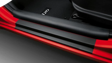 Lámina autoadhesiva de protección para la zona inferior de la puerta. Fabricada a medida en acabado transparente. Aplicable a i20/i20 FL